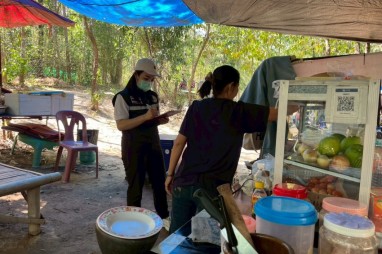 ลงพื้นที่ตรวจประเมิน พร้อมให้คำแนะนำและให้ความรู้แก่ผู้ประกอบการร้านอาหารและแผงลอย