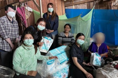 ลงพื้นที่ดำเนินการมอบผ้าอ้อมผู้ใหญ่ และหน้ากากอนามัยเพื่อป้องกันฝุ่นควันให้แก่ผู้ที่มีภาวะพึ่งพิง