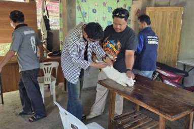 กองสาธารณสุขและสิ่งแวดล้อม ลงพื้นที่ให้บริการฉีดวัคซีนป้องกันโรคพิษสุนัขบ้าแก่สุนัขและแมวของประชาชน
