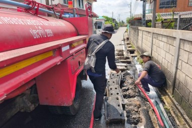 เทศบาลตำบลบ้านหลวง ออกดำเนินการให้ความช่วยเหลือประชาชนในการแก้ไขปัญหาท่อระบายน้ำอุดตัน
