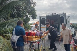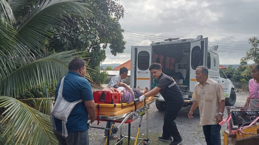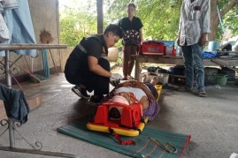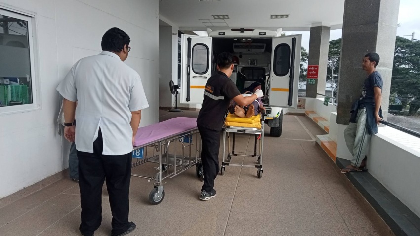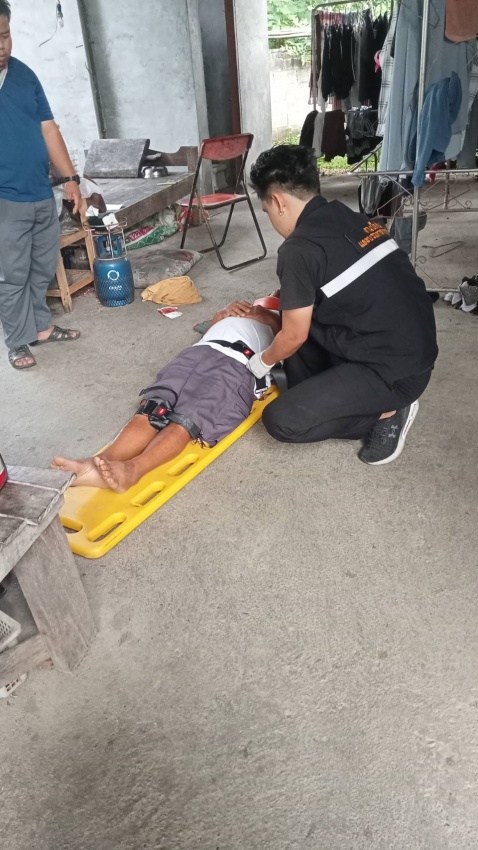 ที่เกิดเหตุพบผู้ป่วยเป็นชาย อายุ 76 ปี วูบล้ม มีแผลเปิดด้านหลังศรีษะ เจ็บหน้าอก หายใจฝืดได้ทำการช่วยเหลือพร้อมนำตัวส่งรักษาต่อที่ รพ.จอมทองในเวลาต่อมา