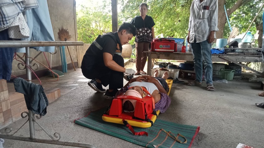 ออกรับผู้ป่วยเหตุลื่นล้มที่บ้านตาดมื่น ม.16 ต.บ้านหลวง