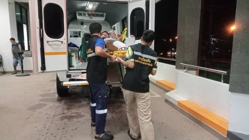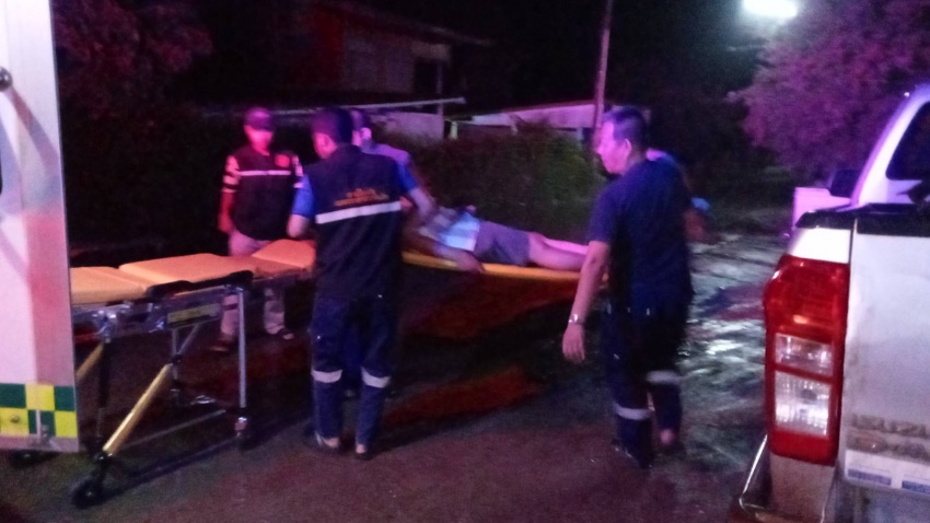 ต.บ้านหลวง ที่เกิดเหตุพบผู้ป่วยชาย อายุ 29 ปี มีอาการปวด-บวม ขาซ้าย เจ้าหน้าที่ได้ทำการช่วยเหลือและนำตัวส่งรักษาต่อที่รพ.จอมทองในเวลาต่อมา