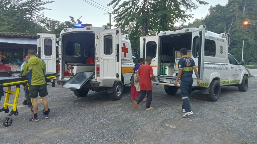 เปลี่ยนถ่ายกับรถกู้ภัยอุทยาน อช.อินทนนท์ที่จุดนัดหมาย หลังรับแจ้งได้รายงานให้ศูนย์กู้ชีพ รพ.จอมทองทราบพร้อมจัดรถและ จนท.ออกรับผู้ป่วย