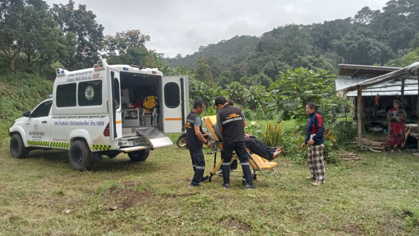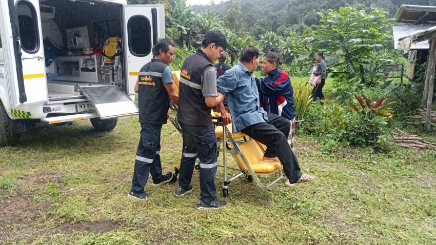 รับผู้ป่วยมีอาการปวดท้อง ปัสสาวะติดขัด บ้านหนองหล่ม ม.22 ต.บ้านหลวง
