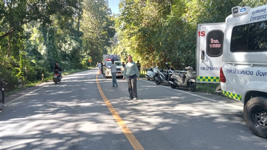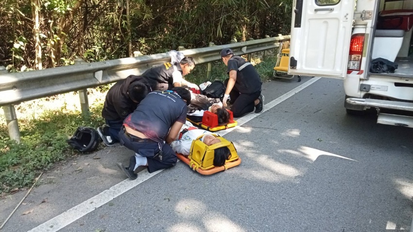 รายที่ 1 มีอาการสะลึมสะลือ มีแผลเปิดริมฝีปากบน เจ้าหน้าที่ได้ทำการช่วยเหลือ กู้ชีพบ้านหลวงนำส่งรพ.จอมทอง