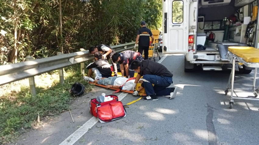เหตุรถจักรยานยนต์แฉลบล้มเอง มีผู้ได้รับบาดเจ็บในที่เกิดเหตุ 2 ราย