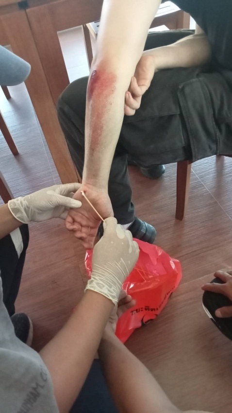 เหตุนักท่องเที่ยวชาวต่างชาติจักยายนยนต์แฉลบล้มเองภายในลานจอดรถด่านวังม่วง เเละมีบาดแผลเล็กน้อย