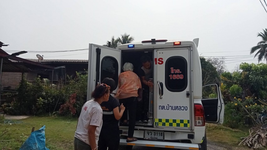 งานกู้ชีพ เทศบาลตำบลบ้านหลวง ได้รับแจ้งจากญาติของผู้ป่วยขอให้จัดรถรับผู้ป่วยมีอาการปวดท้อง ท้องร่วง ที่บ้านแม่หอย ม.10 ต.บ้านหลวง หลังรับแจ้งได้รายงานให้ศูนย์กู้ชีพรพ.จอมทองทราบ พร้อมจัดรถและเจ้าหน้าที่ออกทำการช่วยเหลือ ที่เกิดเหตุพบผู้ป่วยเป็นชาย อายุ 43 ปี มีอาการอ่อนแรง คลื่นไส้ อาเจียน ถ่ายเหลว ปวดท้องบิด เจ้าหน้าที่ได้ทำการช่วยเหลือนำตัวส่งรักษาต่อที่ รพ.จอมมองในเวลาต่อมา