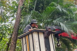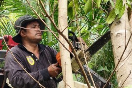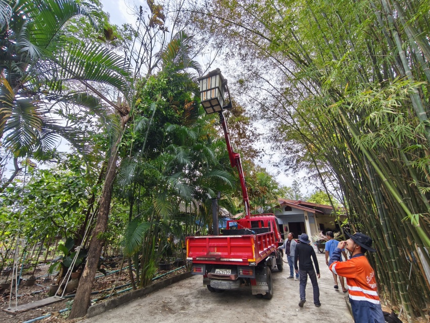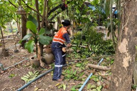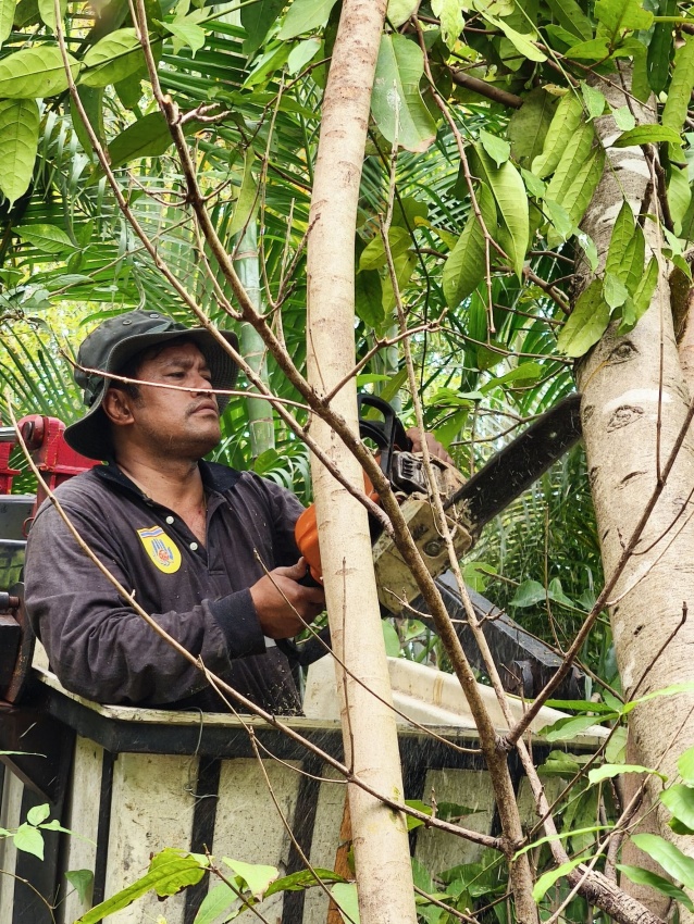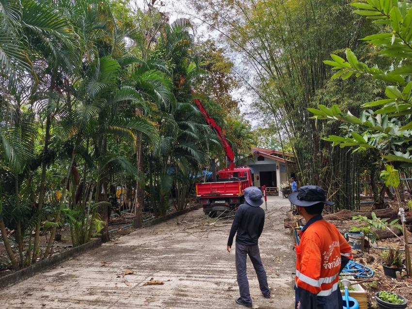 ตัดต้นไม้ที่โค่นล้มในลักษณะพาดทับกัน เพื่อป้องกันอันตรายที่อาจเกิดขึ้นแก่ประชาชน บริเวณบ้านเลขที่ 240 หมู่ที่ 13