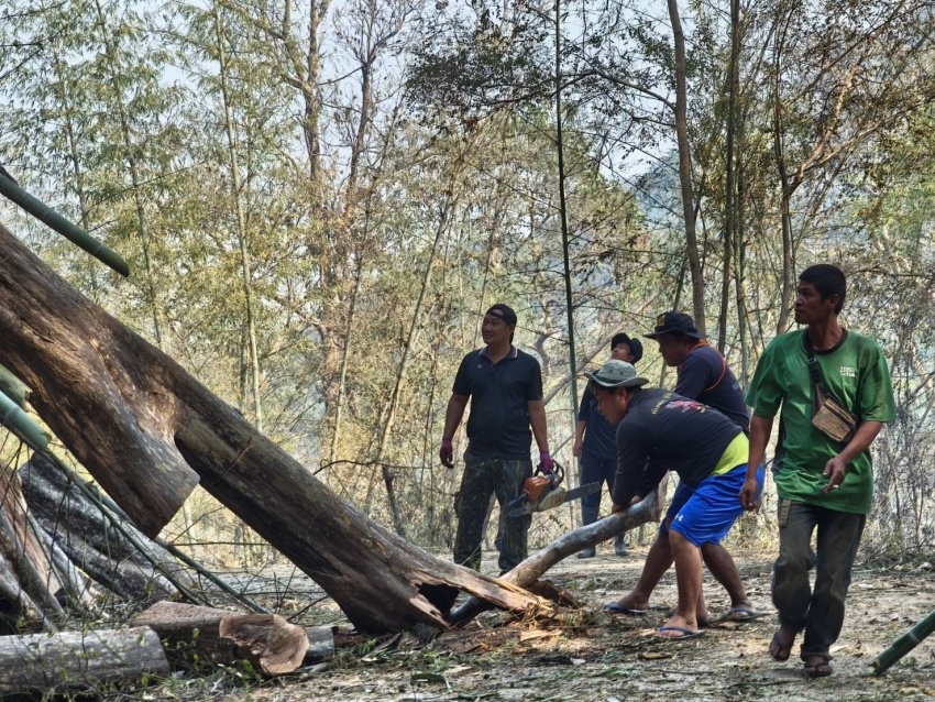 ได้รับการประสานจากชุดเฝ้าระวังไฟป่าบ้านแม่ปอน หมู่ที่ 15 เพื่อขอรับการสนับสนุนเจ้าหน้าที่พร้อมอุปกรณ์ในการตัดไม้ที่ล้มกีดขวางเส้นทางบริเวณสายบ้านแม่ปอน ? บ้านแม่ปอนใน