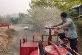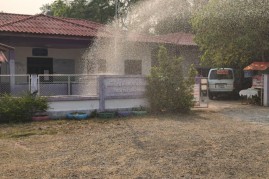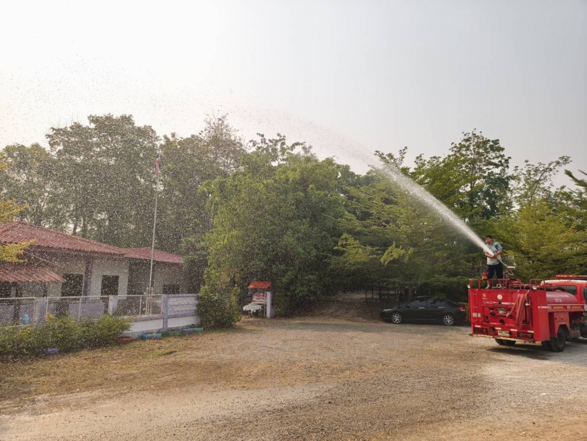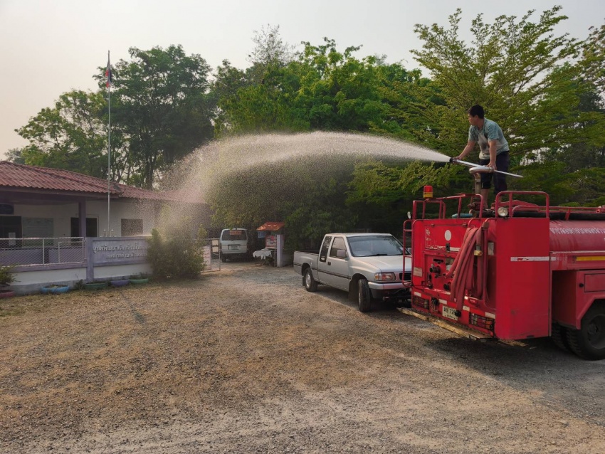 นำรถบรรทุกน้ำออกปฏิบัติงานฉีดพ่นน้ำ ณ ศูนย์พัฒนาเด็กเล็กน้ำตกแม่กลาง เพื่อบรรเทาและลดปริมาณฝุ่นละอองขนาดเล็ก (PM 2.5)