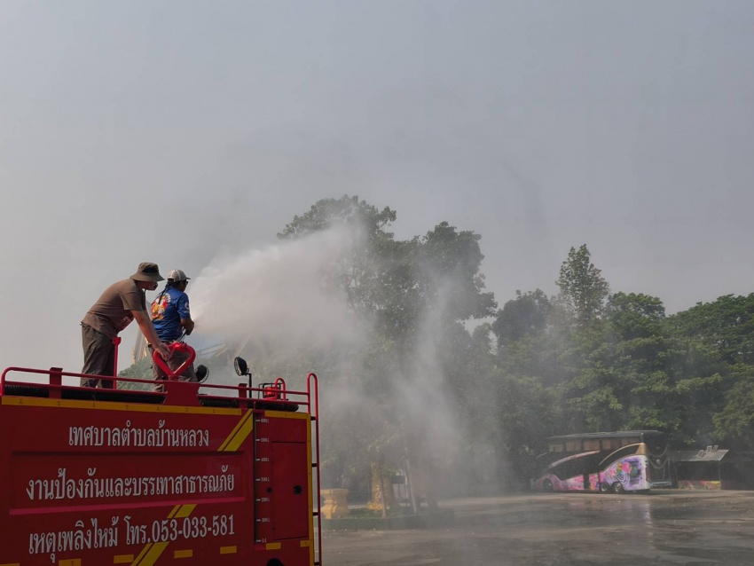 วันที่ 31 มีนาคม 2569 งานป้องกันและบรรเทาสาธารณภัย สำนักปลัดเทศบาลตำบลบ้านหลวง อำเภอจอมทอง จังหวัดเชียงใหม่ ได้ดำเนินการ นำรถบรรทุกน้ำออกปฏิบัติงานฉีดพ่นน้ำ ณ วัดน้ำตกแม่กลาง เพื่อบรรเทาและลดปริมาณฝุ่นละอองขนาดเล็ก (PM 2.5) ตลอดจนเพิ่มความชุ่มชื้นในอากาศ อันเป็นการดูแลและส่งเสริมสุขภาพของประชาชนในพื้นที่ รวมถึงนักท่องเที่ยวที่เดินทางขึ้นสู่ดอยอินทนนท์ ทั้งนี้ การปฏิบัติงานดังกล่าวเป็นไปด้วยความเรียบร้อย