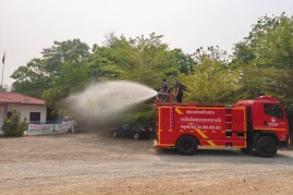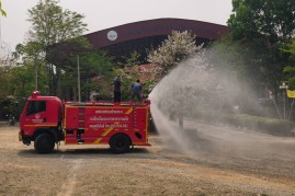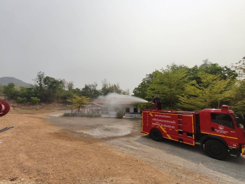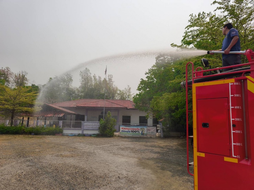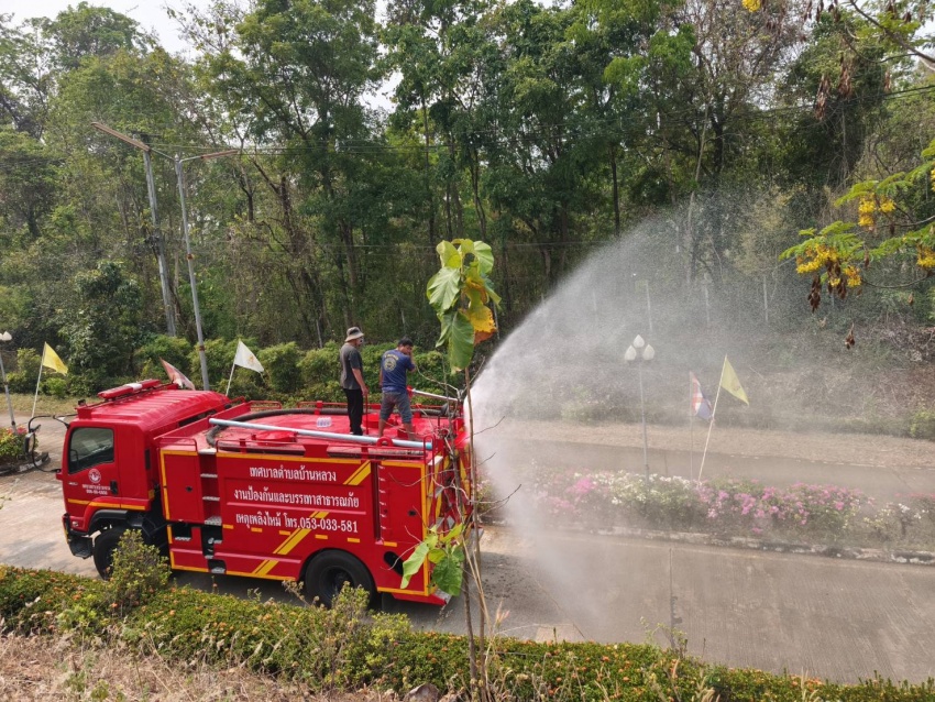 ดำเนินการนำรถบรรทุกน้ำออกปฏิบัติงานฉีดพ่นน้ำบริเวณศูนย์พัฒนาเด็กเล็กน้ำตกแม่กลาง และพื้นที่โดยรอบสำนักงานเทศบาลตำบลบ้านหลวง