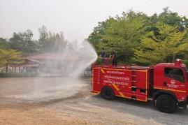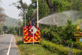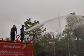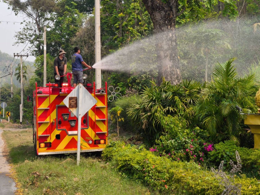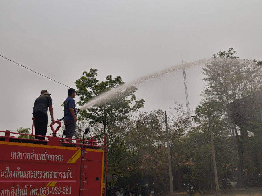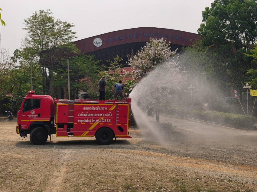 งานป้องกันและบรรเทาสาธารณภัย สำนักปลัด เทศบาลตำบลบ้านหลวง อำเภอจอมทอง จังหวัดเชียงใหม่ ได้ดำเนินการนำรถบรรทุกน้ำออกปฏิบัติงานฉีดพ่นน้ำบริเวณศูนย์พัฒนาเด็กเล็กน้ำตกแม่กลาง และพื้นที่โดยรอบสำนักงานเทศบาลตำบลบ้านหลวง เพื่อบรรเทาปัญหาฝุ่นละอองขนาดเล็ก (PM 2.5) และเพิ่มความชุ่มชื้นในอากาศ อันเป็นการส่งเสริมและดูแลสุขภาพของเด็กเล็กในพื้นที่ ประชาชนโดยรอบ ตลอดจนผู้มาติดต่อราชการ ทั้งนี้ การดำเนินการดังกล่าวเป็นไปด้วยความเรียบร้อย