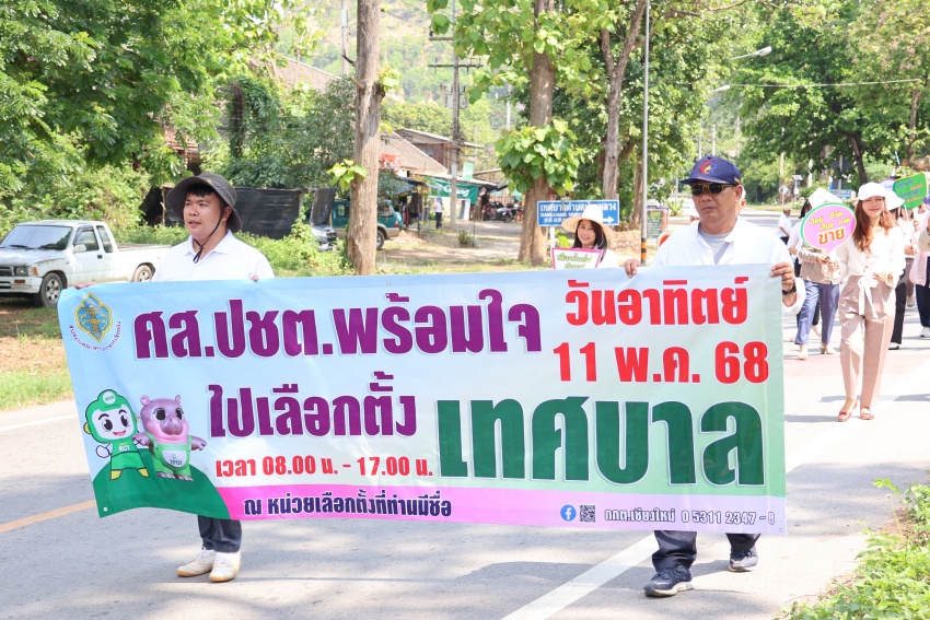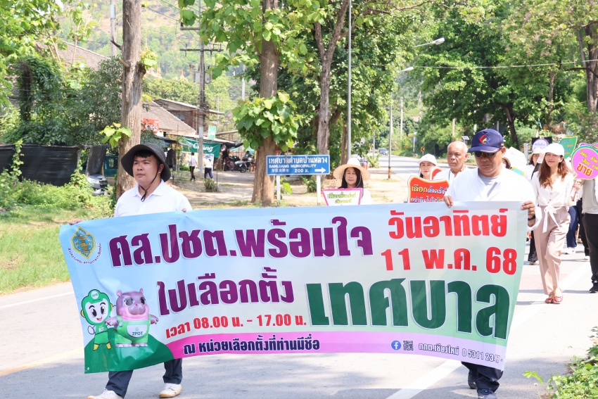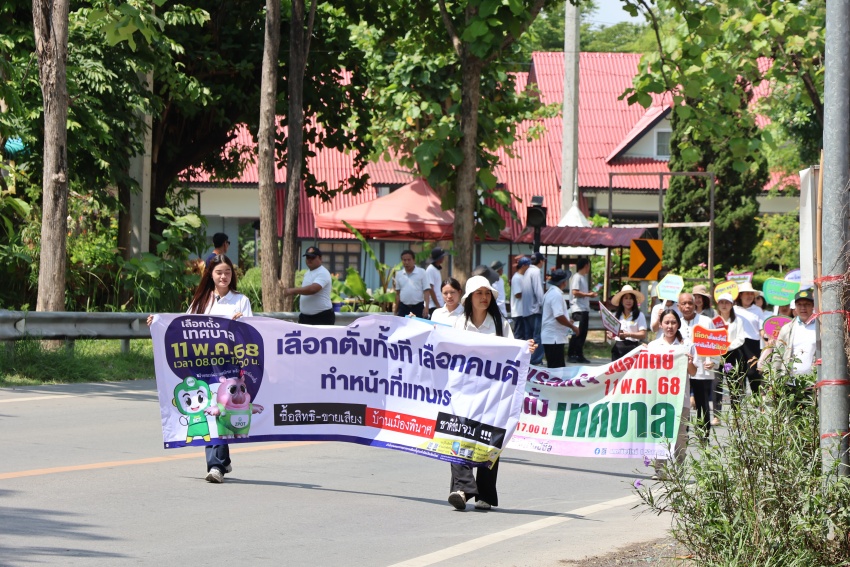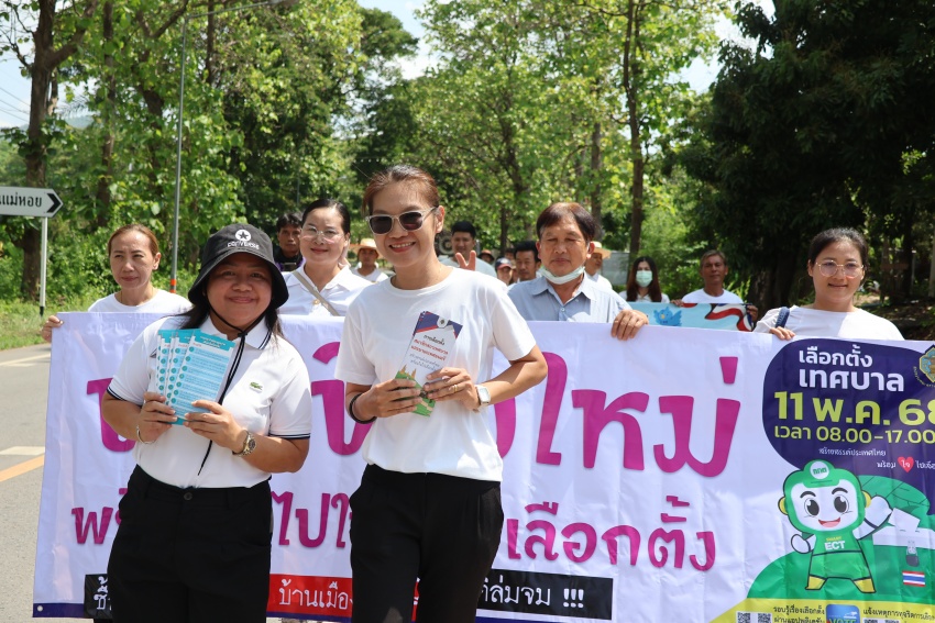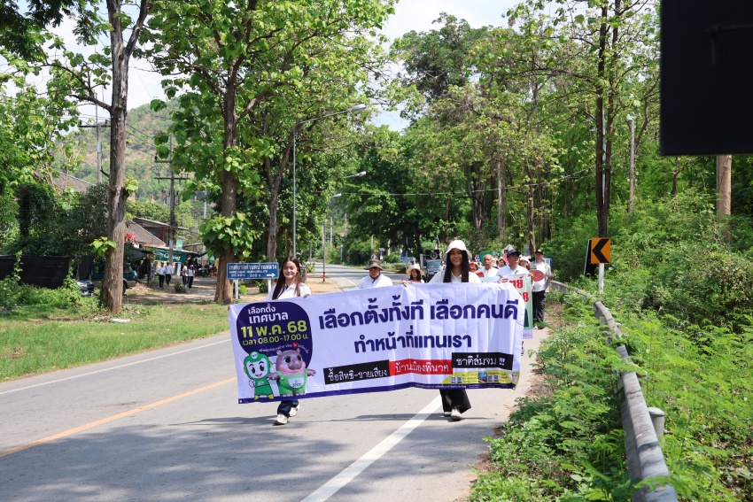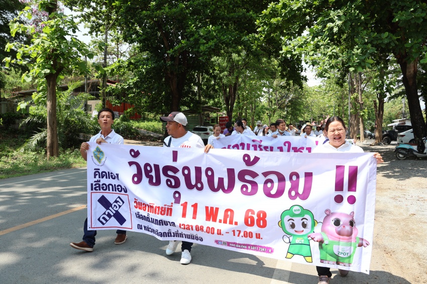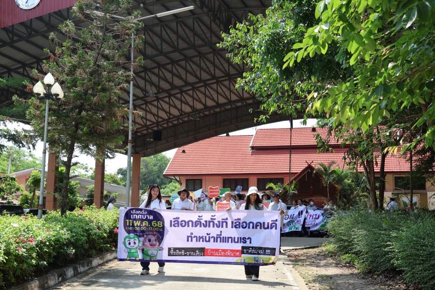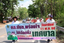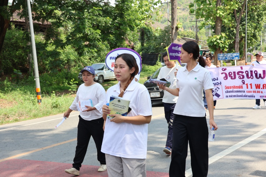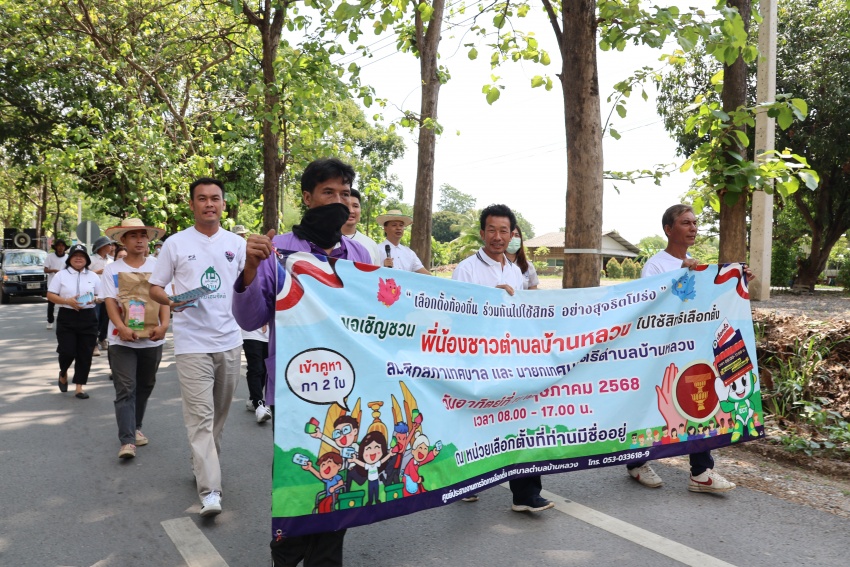 เดินรณรงค์ให้ประชาชนออกมาใช้สิทธิเลือกตั้ง สมาชิกสภาเทศบาลและนายกเทศมนตรีตำบลบ้านหลวง