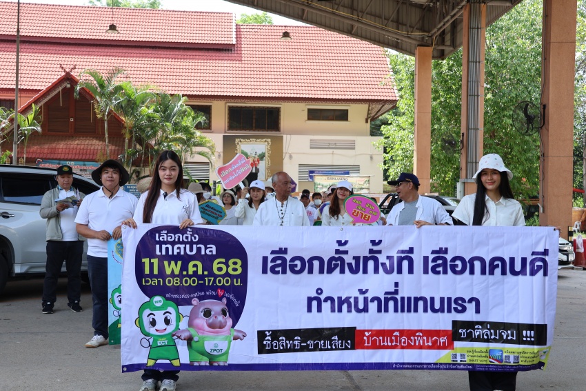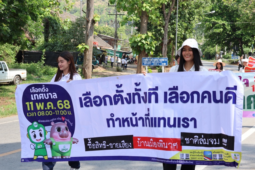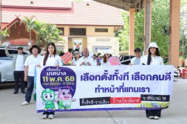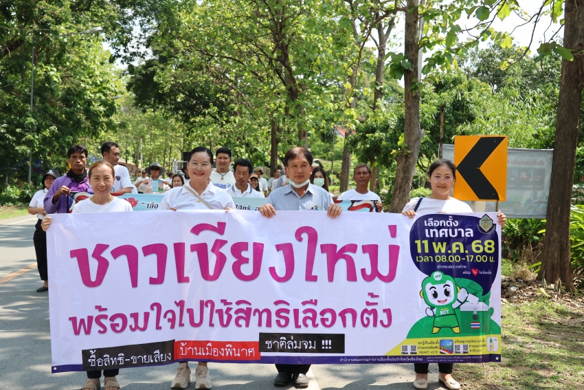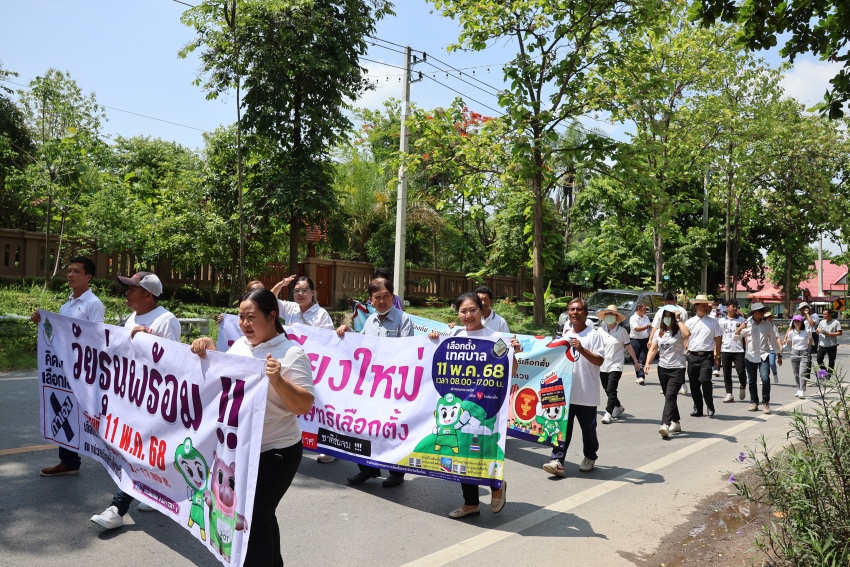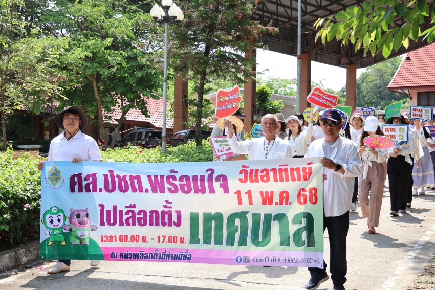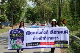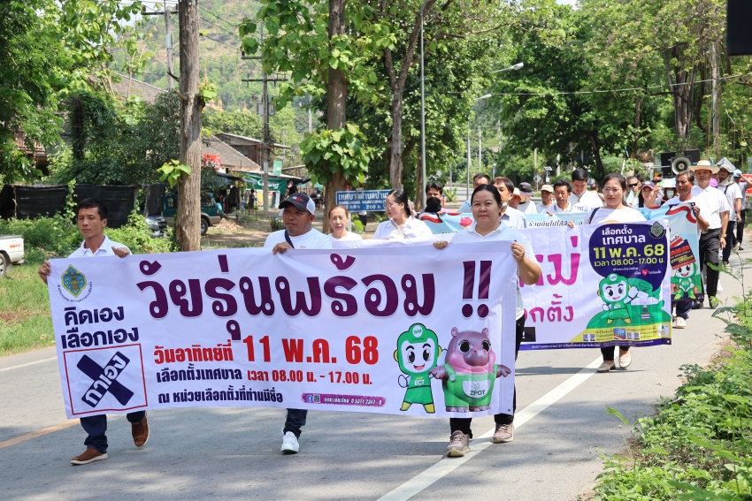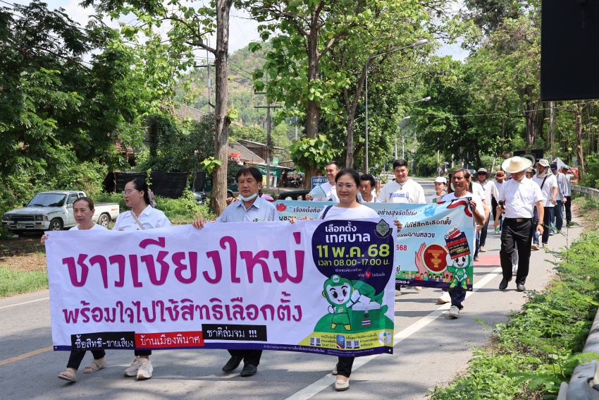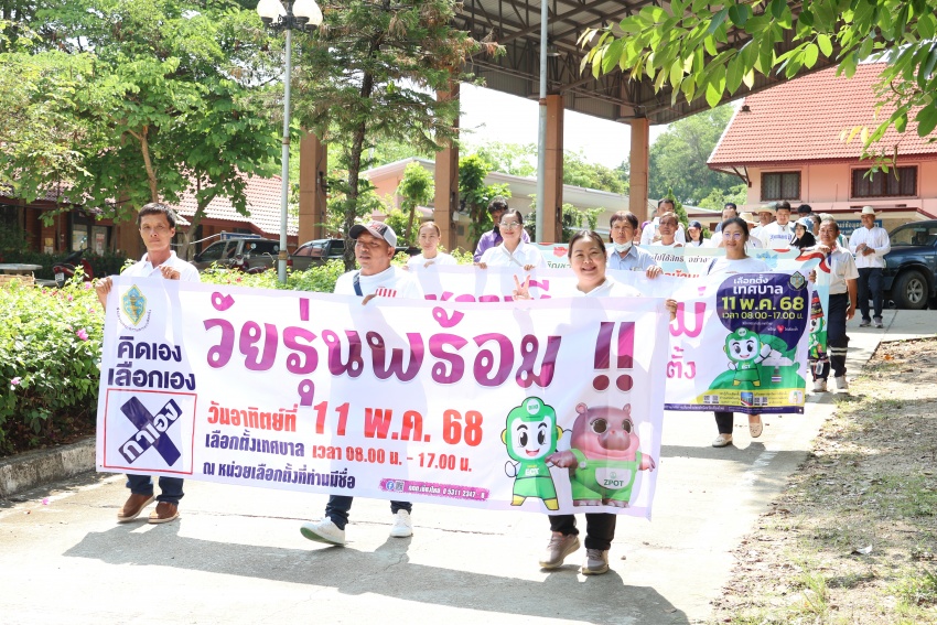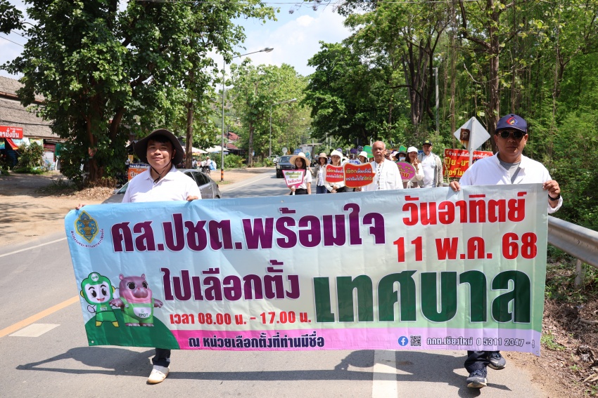 เดินรณรงค์ให้ประชาชนออกมาใช้สิทธิเลือกตั้ง สมาชิกสภาเทศบาลและนายกเทศมนตรีตำบลบ้านหลวง