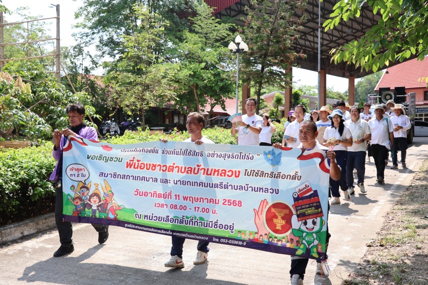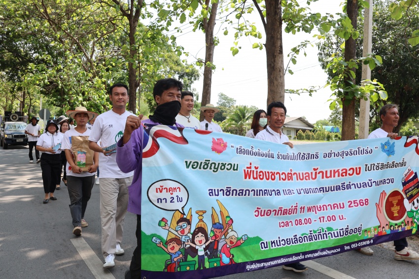 เทศบาลตำบลบ้านหลวง ลงพื้นที่ในการรณรงค์เชิญชวนประชาชน ออกไปใช้สิทธิ์เลือกตั้งสมาชิกสภาเทศบาล และนายกเทศมนตรีตำบลบ้านหลวง ในวันอาทิตย์ที่ 11 พฤษภาคม 2568 เวลา 08.00-17.00 น. ณ หน่วยเลือกตั้งที่ท่านรายชื่อผู้มีสิทธิเลือกตั้ง เลือกตั้งท้องถิ่น ร่วมกันใช้สิทธิ อย่างสุจริตโปร่งใส