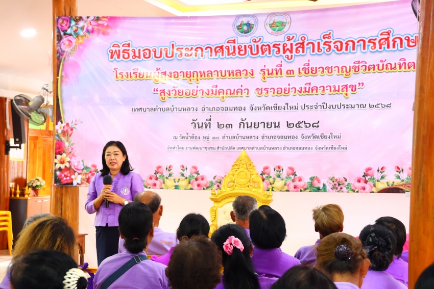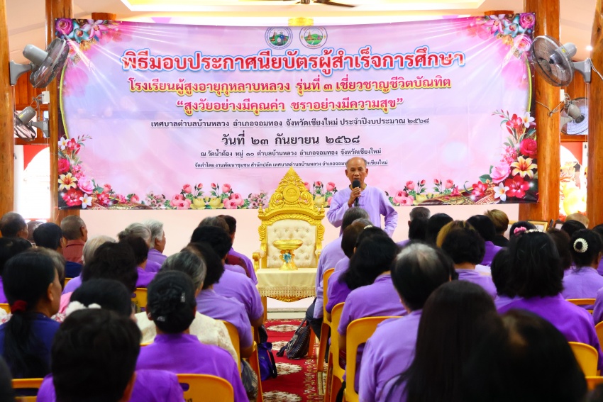 พิธีมอบใบประกาศนียบัตร นักเรียนโรงเรียนผู้สูงอายุกุหลาบหลวงผู้สำเร็จการศึกษา รุ่นที่ 3