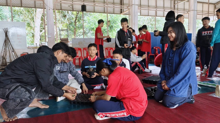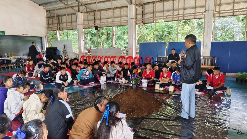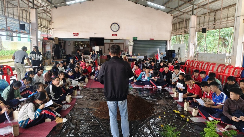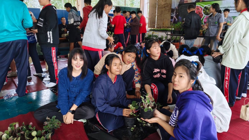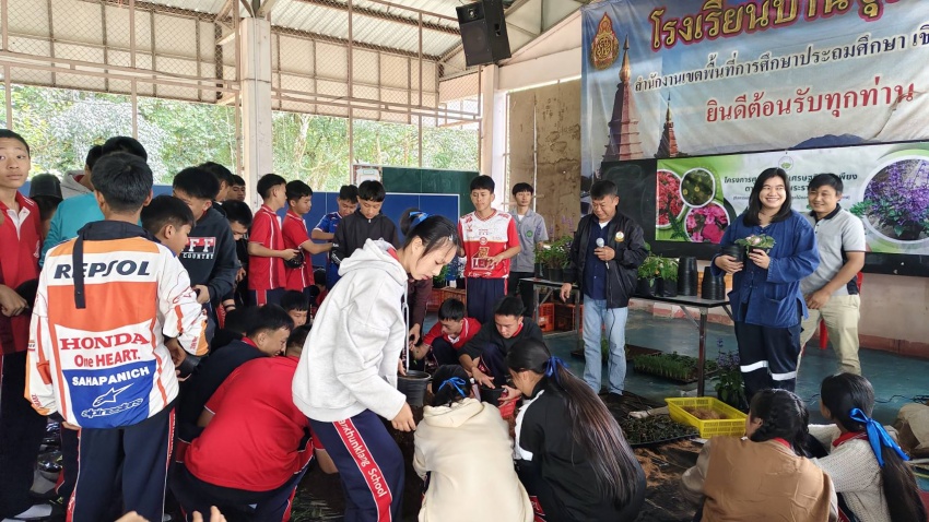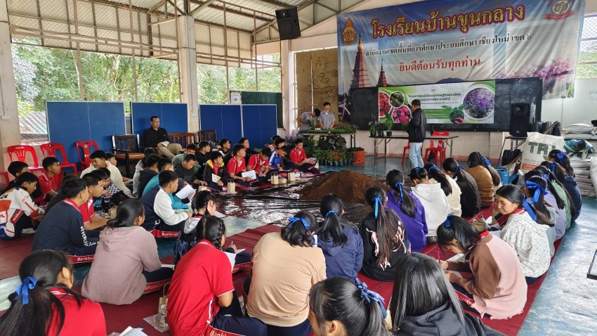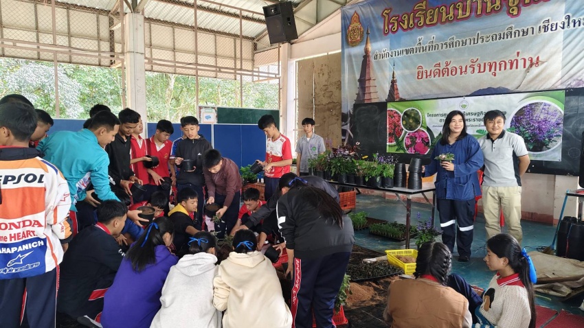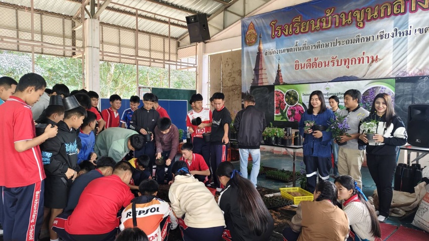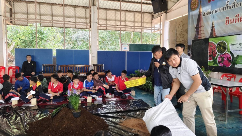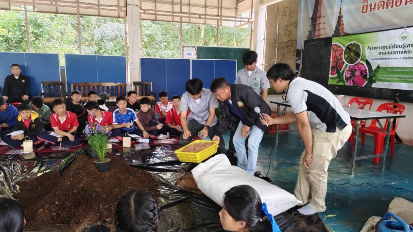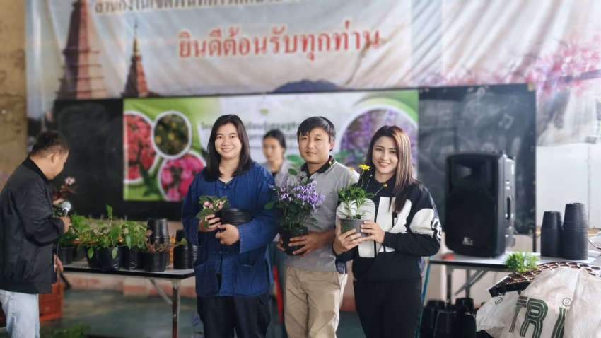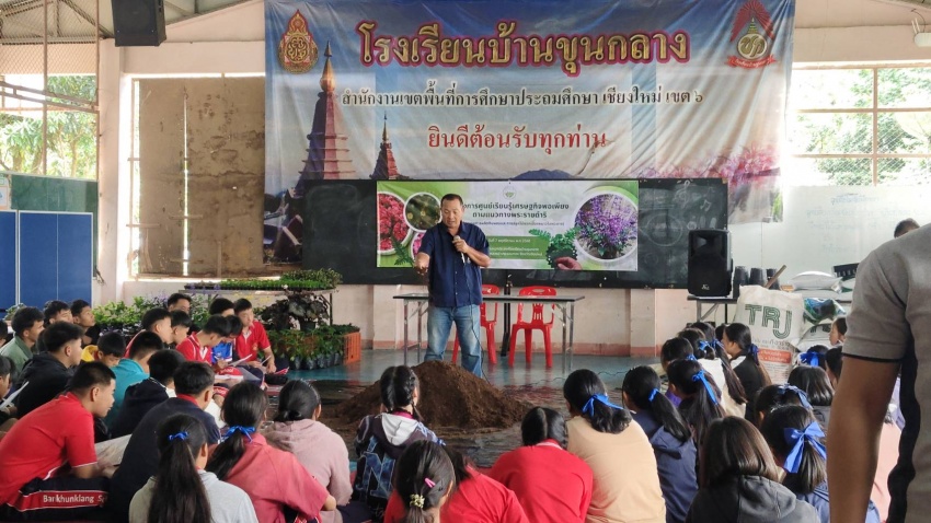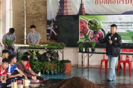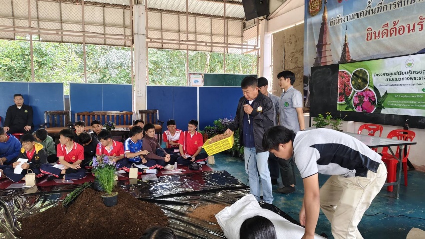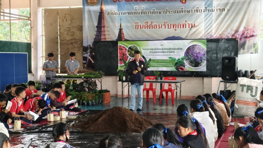 โครงการศูนย์เรียนรู้เศรษฐกิจพอเพียงตามแนวทางพระราชดำริ (กิจกรรมการผลิตดินผสมและการปลูกไม้ดอกเมืองหนาวในกระถาง)