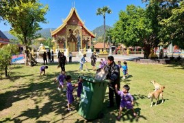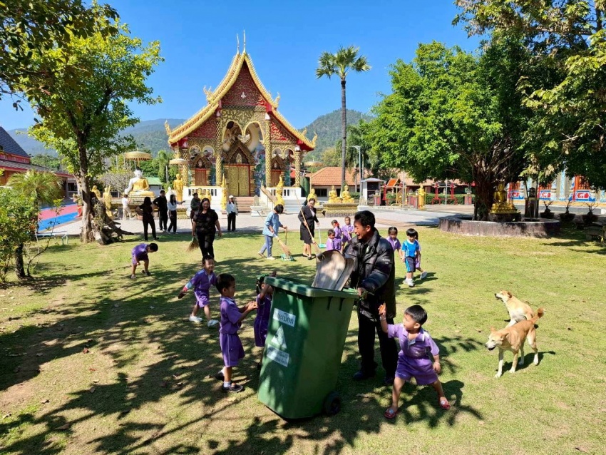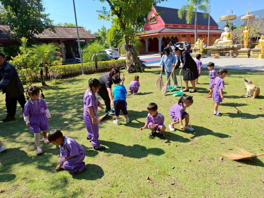 เทศบาลตำบลบ้านหลวง ร่วมกับครูเเละนักเรียนจากศพด.ตำบลบ้านหลวง ร่วมกิจกรรม ณ วัดนำ้ต้อง เนื่องในโอกาสวันพระพบรมราชสมภพพระบาทสมเด็จพระบรมชนกาะิเบศรมหาภูมิพลอดุลยเดช