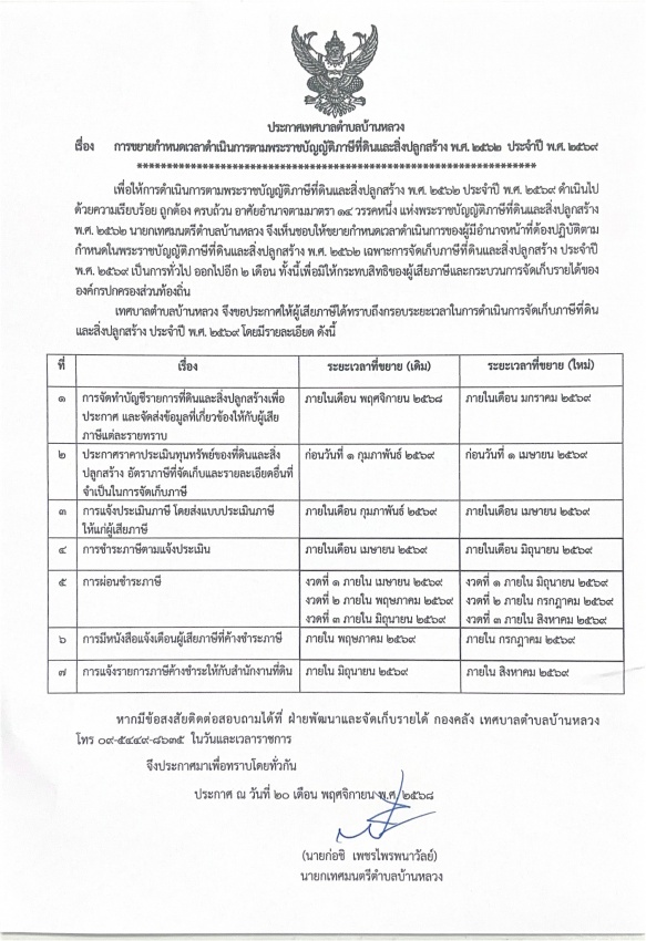 ประกาศเทศบาลตำบลบ้านหลวง เรื่อง การขยายกำหนดเวลาดำเนินการตามพระราชบัญญัติภาษีที่ดินเเละสิ่งปลูกสร้าง พ.ศ.2562 ประจำปี พ.ศ.2569 ยังไม่มีความคิดเห็น เริ่มแสดงความคิดเห็นเป็นคนแรก