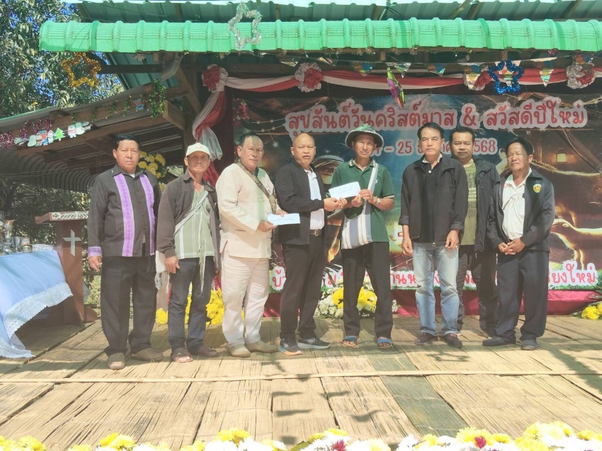นายก่อชิ เพชรไพรพนาวัลย์ นายกเทศมนตรีตำบลบ้านหลวงพร้อมคณะผู้บริหาร สมาชิกสภาเทศบาล ร่วมโครงการจัดงานเทศกาลวันคริสต์มาส