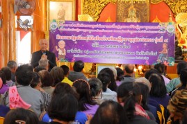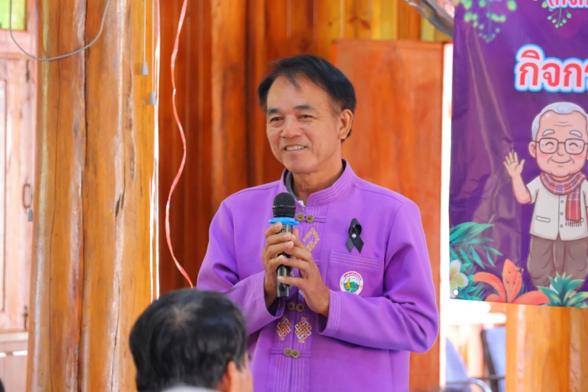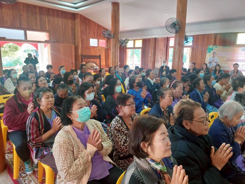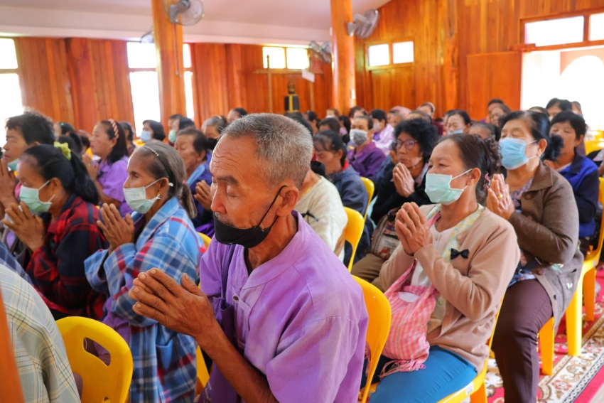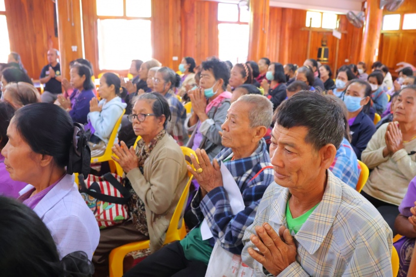 และผู้สูงอายุได้ร่วมกันรับฟังธรรมมะในการดำเนินชีวิต โดยพระสุรชัย คีรีระลึก (เจ้าอาวาสวัดเมืองกลาง)