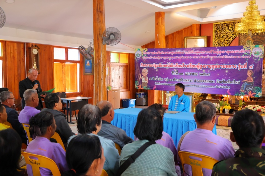 นักเรียนโรงเรียนผู้สูงอายุกุหลาบหลวง รุ่นที่ 4 โดยมีนายอุดมชัย มหายาโน (รองนายกเทศมนตรีตำบลบ้านหลวง)