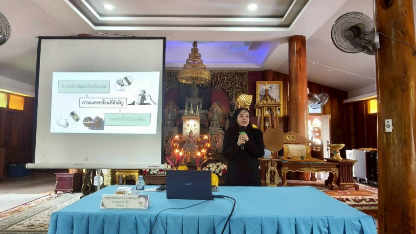 โดยวิทยากร นางสาวพันธิภา จันทอนธิมุก ตำแหน่ง พยาบาลวิชาชีพ เทศบาลตำบลบ้านหลวงบ้านหลวง ณ วัดน้ำต้อง หมู่ที่ 10