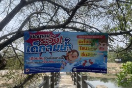 ติดตั้งป้ายประชาสัมพันธ์เพื่อป้องกันอุบัติเหตุเด็กจมน้ำ