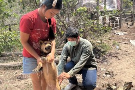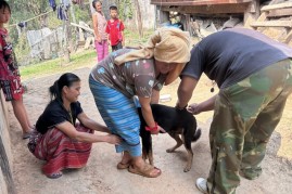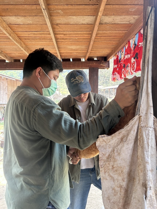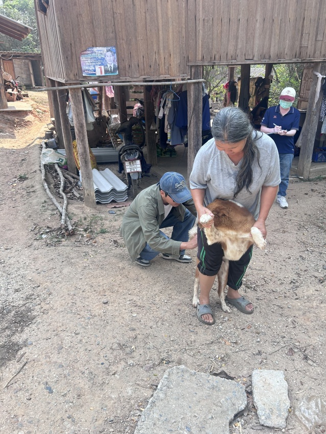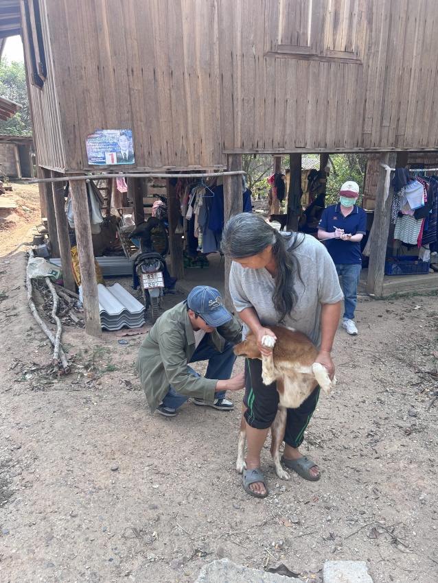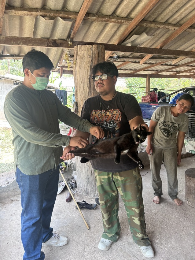 ลงพื้นที่ดำเนินการฉีดวัคซีนป้องกันโรคพิษสุนัขบ้าให้แก่สุนัขและแมวของประชาชนในพื้นที่หมู่ที่ 9