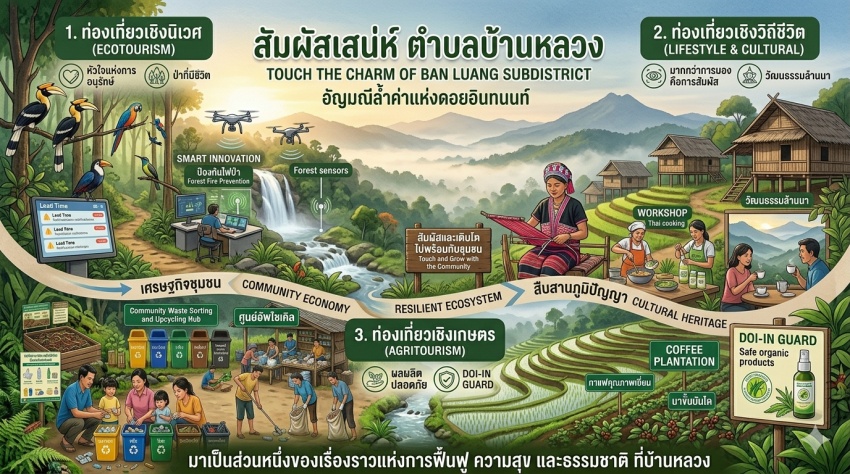 สัมผัสเสน่ห์ 'ตำบลบ้านหลวง': อัญมณีล้ำค่าแห่งดอยอินทนนท์ ที่ความยั่งยืนและการท่องเที่ยวเดินทางไปด้วยกัน
