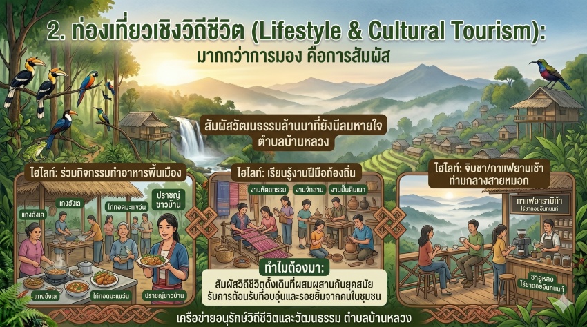 2. ท่องเที่ยวเชิงวิถีชีวิต (Lifestyle & Cultural Tourism): มากกว่าการมอง คือการสัมผัส