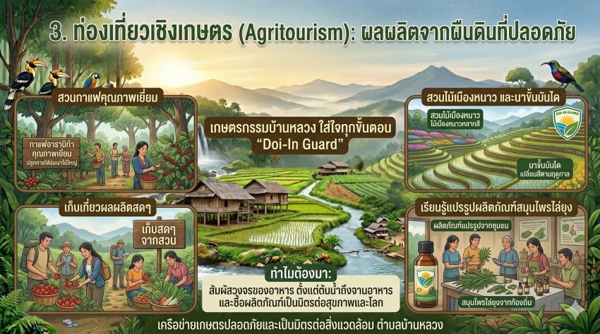 3. ท่องเที่ยวเชิงเกษตร (Agritourism): ผลผลิตจากผืนดินที่ปลอดภัย