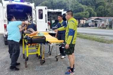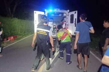รับผู้ป่วยเหตุรถจักรยานยนต์แฉลบล้มเอง บริเวณหน้าหอพักสองพี่น้องใกล้แยกโรงแรมราชพฤกษ์ ม.14 ต.ข่วงเปา