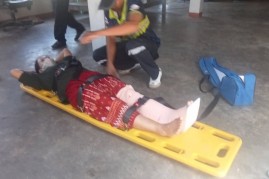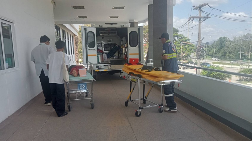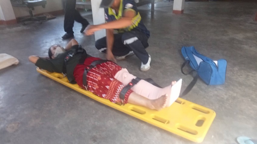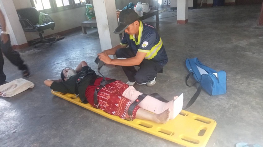 รับผู้ป่วยหญิงจากเหตุการณ์ลื่นล้มเเละปวดบริเวณขา ที่บ้านแม่หอย ม.10 ต.บ้านหลวง