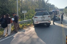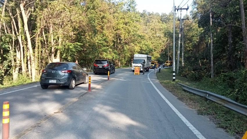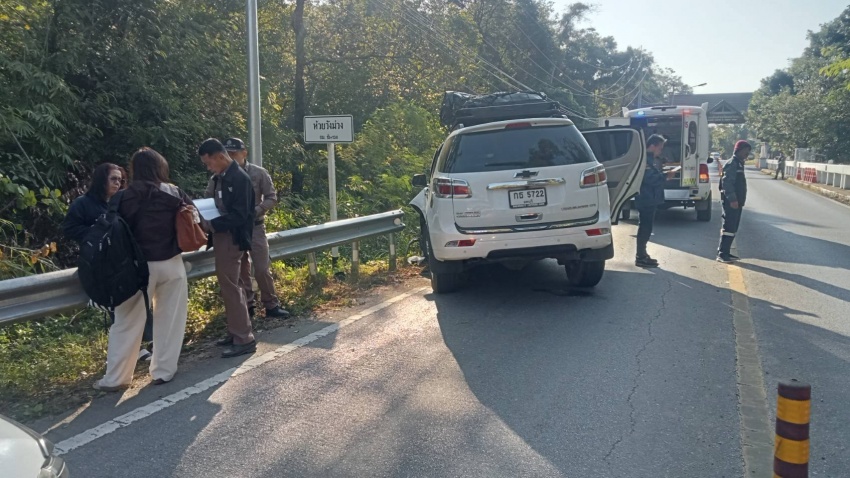 เหตุรถยนต์นักท่องเที่ยวชนคอสะพานวังม่วง เส้นทางจอมทอง-อินทนนท์ ขาลงใกล้ศูนย์บริการด่านวังม่วงประมาณ กม.10