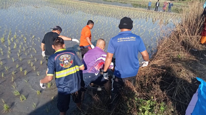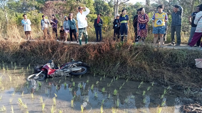 เหตุรถจักรยานยนต์ตกน้ำในทุ่งนา