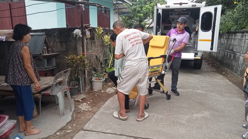 จัดรถรับผู้ป่วยอ่อนแรง ที่บ้านแม่หอยซอย1 ม.10 ต.บ้านหลวง