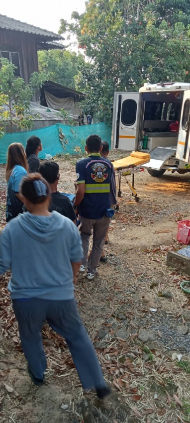 เมื่อถึงจุดเกิดเหตุ พบผู้ป่วยชาย อายุ 55 ปี มีอาการชักเกร็งต่อเนื่อง ไม่สามารถสื่อสารถาม-ตอบได้ มีไข้สูง และมีภาวะปัสสาวะราด เจ้าหน้าที่ได้ดำเนินการให้การช่วยเหลือเบื้องต้น และนำส่งผู้ป่วยเข้ารับการรักษาต่อ ณ โรงพยาบาลจอมทองอย่างปลอดภัยในเวลาต่อมา