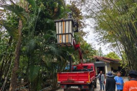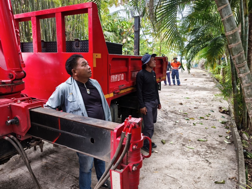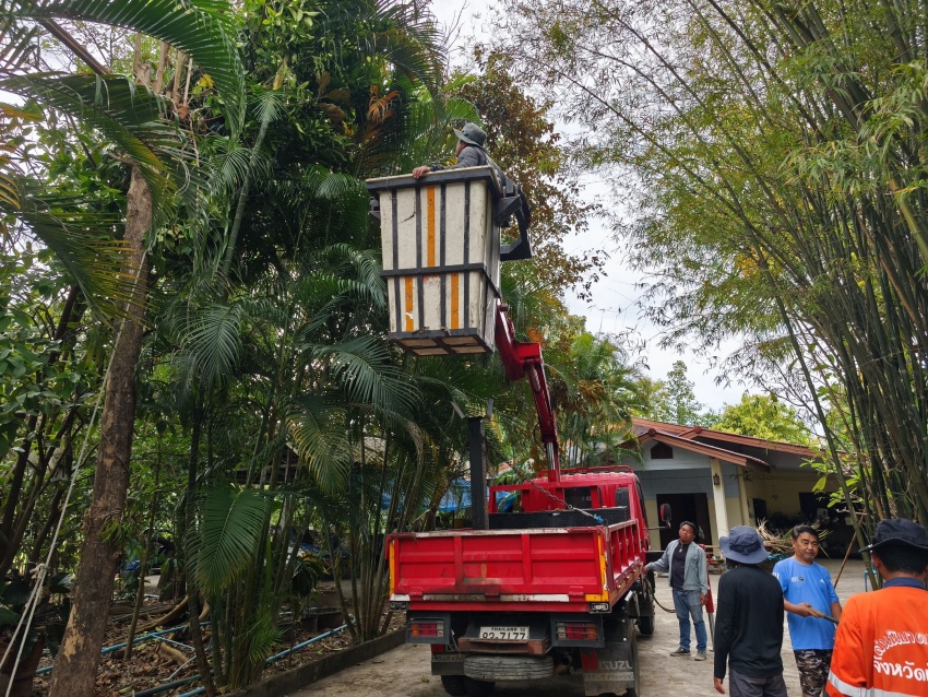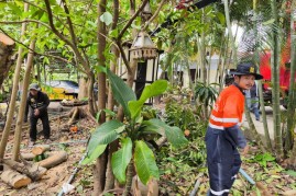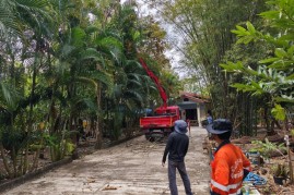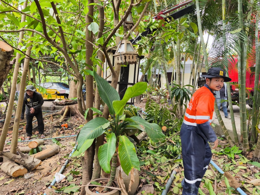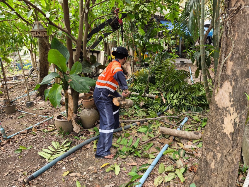 ตัดต้นไม้ที่โค่นล้มในลักษณะพาดทับกัน เพื่อป้องกันอันตรายที่อาจเกิดขึ้นแก่ประชาชน บริเวณบ้านเลขที่ 240 หมู่ที่ 13