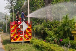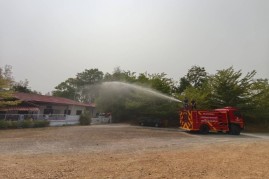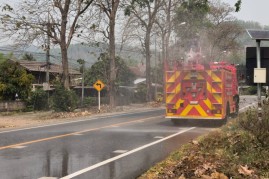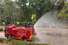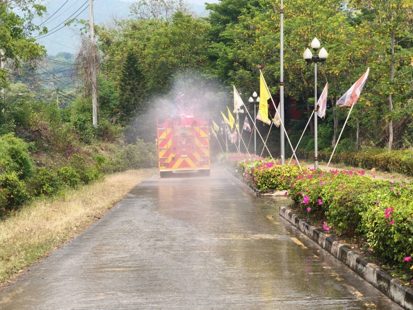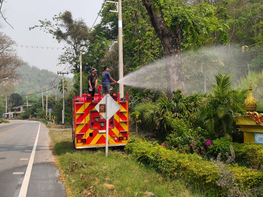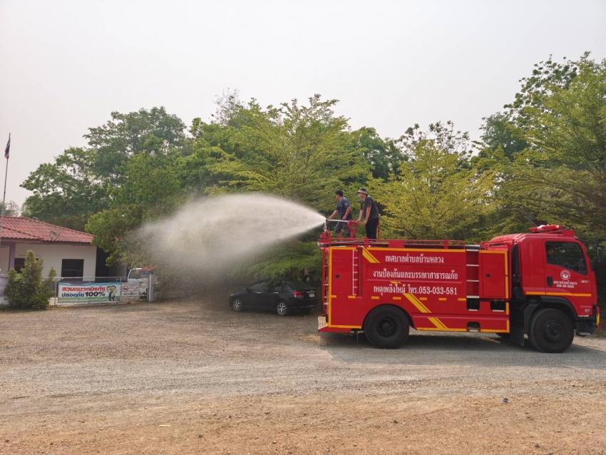 งานป้องกันและบรรเทาสาธารณภัย สำนักปลัด เทศบาลตำบลบ้านหลวง อำเภอจอมทอง จังหวัดเชียงใหม่ ได้ดำเนินการนำรถบรรทุกน้ำออกปฏิบัติงานฉีดพ่นน้ำบริเวณศูนย์พัฒนาเด็กเล็กน้ำตกแม่กลาง และพื้นที่โดยรอบสำนักงานเทศบาลตำบลบ้านหลวง เพื่อบรรเทาปัญหาฝุ่นละอองขนาดเล็ก (PM 2.5) และเพิ่มความชุ่มชื้นในอากาศ อันเป็นการส่งเสริมและดูแลสุขภาพของเด็กเล็กในพื้นที่ ประชาชนโดยรอบ ตลอดจนผู้มาติดต่อราชการ ทั้งนี้ การดำเนินการดังกล่าวเป็นไปด้วยความเรียบร้อย