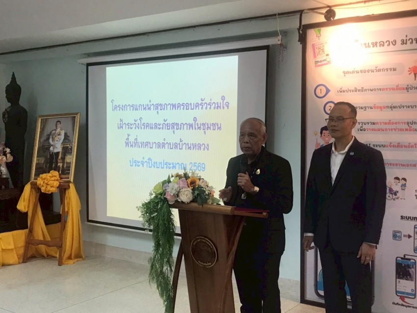 กองสาธารณสุขและสิ่งแวดล้อมเทศบาลตำบลบ้านหลวง จัดโครงการแกนนำสุขภาพครอบครัวร่วมใจเฝ้าระวังโรคและภัยสุขภาพในชุมชนพื้นที่เทศบาลตำบลบ้านหลวง ประจำปีงบประมาณ 2569 โดยมีนายอภิสิทธิ์ ยลละออ เป็นประธานเปิดโครงการ โดยมีวัตถุประสงค์เพื่อพัฒนาศักยภาพทีมควบคุมและป้องกันโรค (เช่น ไข้เลือดออก) ในระดับตำบล (SRRT) และส่งเสริมการมีส่วนร่วมของชุมชนในการดูแลสุขภาพของตนเอง ครอบครัว และชุมชน โครงการนี้เน้นการสร้างทีมงานที่เข้มแข็งในการเฝ้าระวัง ป้องกัน และควบคุมโรคต่าง ๆ รวมถึงการสร้างชุมชนต้นแบบในการดูแลสุขภาพและจัดการกับโรคไม่ติดต่อเรื้อรัง