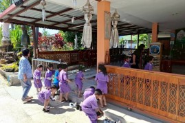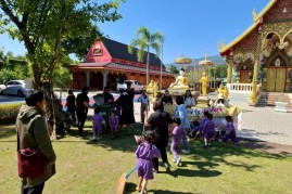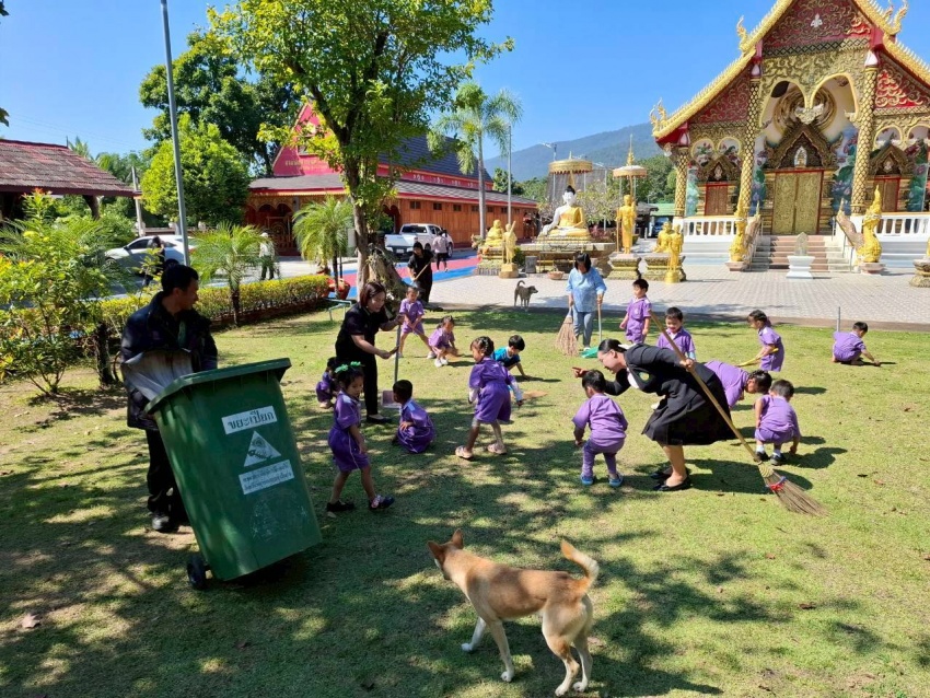 เทศบาลตำบลบ้านหลวง ร่วมกับครูเเละนักเรียนจากศพด.ตำบลบ้านหลวง ร่วมกิจกรรม ณ วัดนำ้ต้อง เนื่องในโอกาสวันพระพบรมราชสมภพพระบาทสมเด็จพระบรมชนกาะิเบศรมหาภูมิพลอดุลยเดช