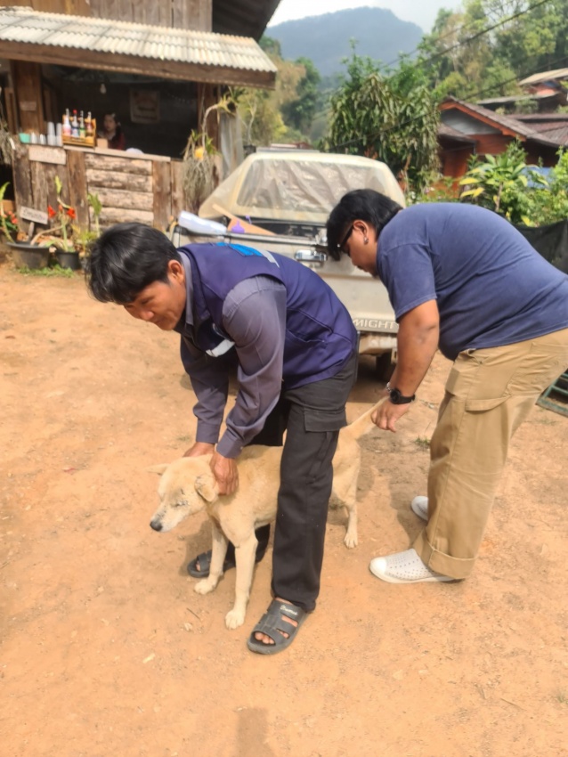 ลงพื้นที่ฉีดวัคซีนป้องกันโรคพิษสุนัขบ้า บ้านผาหมอน หมู่ 8 เเละ บ้านหนองหล่ม หมู่ 22 ต.บ้านหลวง