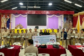 นายอภิสิทธิ์ ยลละออ ปลัดเทศบาลตำบลบ้านหลวง พร้อมด้วยนางสาวพิมพ์ศา วสุสิริธันย์ ผู้อำนวยการกองสาธารณสุขและสิ่งแวดล้อม ได้นำคณะเจ้าหน้าที่กองสาธารณสุขและสิ่งแวดล้อม ดำเนินการมอบหน้ากากอนามัยแก่ผู้นำชุมชน ในการประชุมกำนันและผู้ใหญ่บ้าน ณ หอประชุมวิทยาลัยการอาชีพจอมทอง