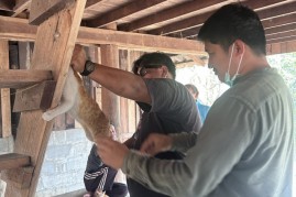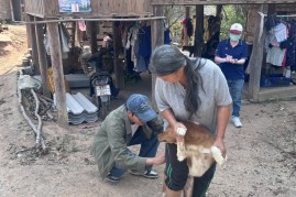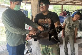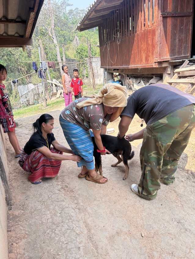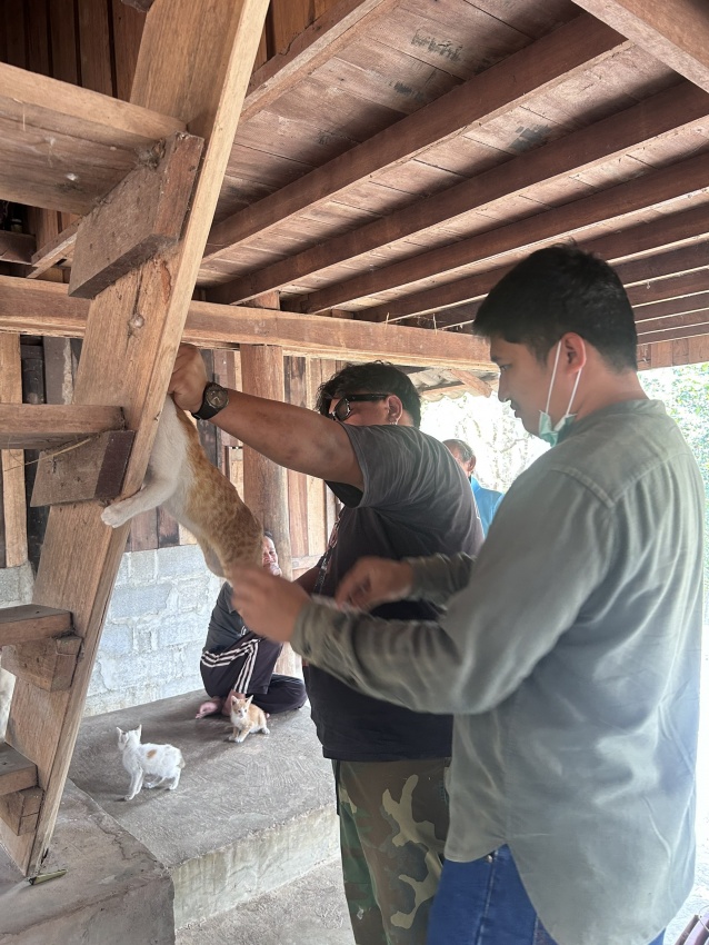 ลงพื้นที่ดำเนินการฉีดวัคซีนป้องกันโรคพิษสุนัขบ้าให้แก่สุนัขและแมวของประชาชนในพื้นที่หมู่ที่ 9